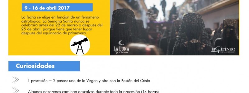 Un costalero, un nazareno, una saeta… ¿No te sueñan estas palabras? No te preocupes, hemos elaborado una infografÃa que regrupa lo más importante sobre la Semana Santa. Enjoy! #Solrenteam Más info en: http://www.enforex.com/espanol/cultura/semana-santa.html http://www.donquijote.org/cultura/espana/sociedad/fiestas-y-celebraciones/semana-santa * http://sevilla.abc.es/andalucia/cordoba/semana-santa/sevi-datos-mas-llamativos-semana-santa-cordoba-201703311220_noticia.html
